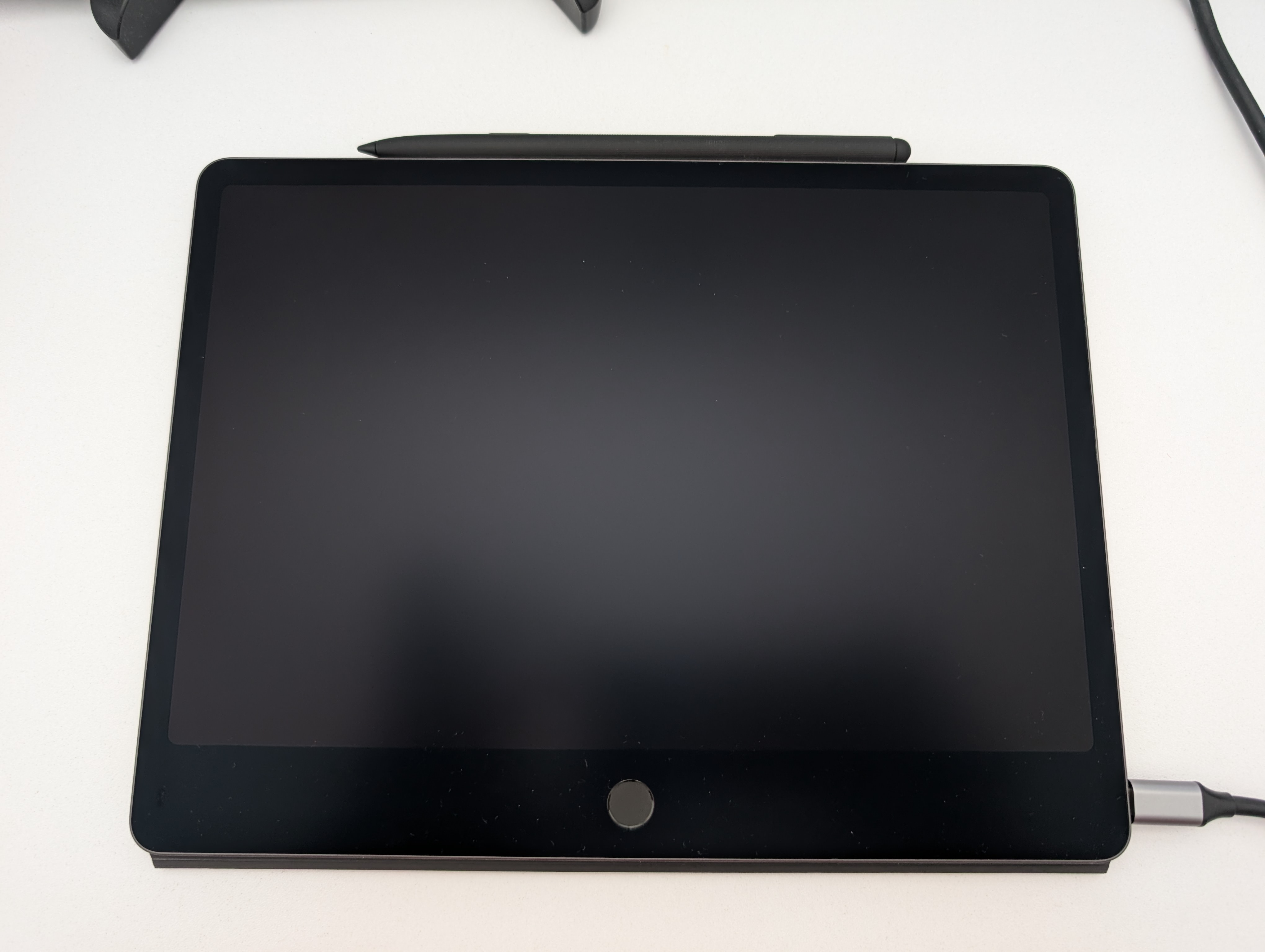 Speaking of setting the brightness, battery life is fine - the 8,000mAh cell is sizeable for a tablet this weight. It doesn't charge very quickly at all despite supporting 33W, though. I use my Anker dock (pictured just to the right of the picture below) and it doesn't seem to want to pull more than 17W, frequently dropping to as low as 2-3W.
